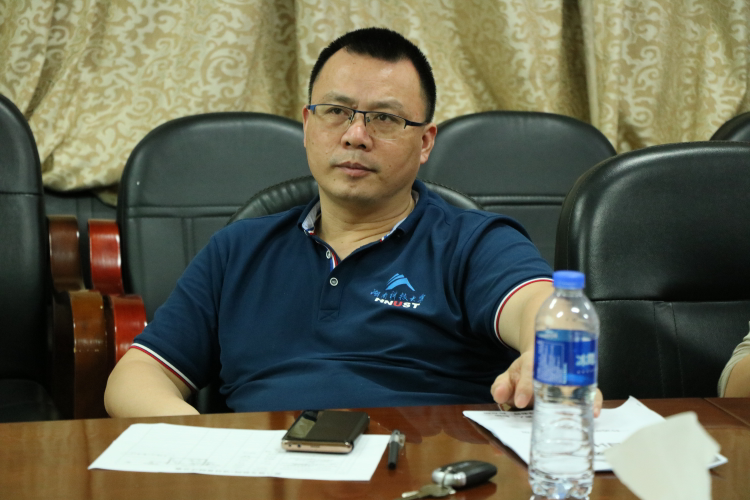 副院长颜建辉正在听答辩人介绍项目