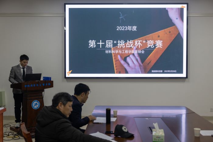 228日晚,bv伟德国际体育官方网站在知行楼A140举行第十届“挑战杯”bv伟德国际体育官方网站大学生课外学术科技作品竞赛推荐评审会。为加强大学生创新创业教育,培育学生创新精神、提升创新能力,进一步激励bv伟德国际体育官方网站学子积极奋进、勇于创新,特邀化学化工学院原党委书记曾荣今、化学化工学院副院长陈述、商学院经济管理综合实验与模拟训练中心主任童杰成担任评委,本次答辩会由张钎彬主持。