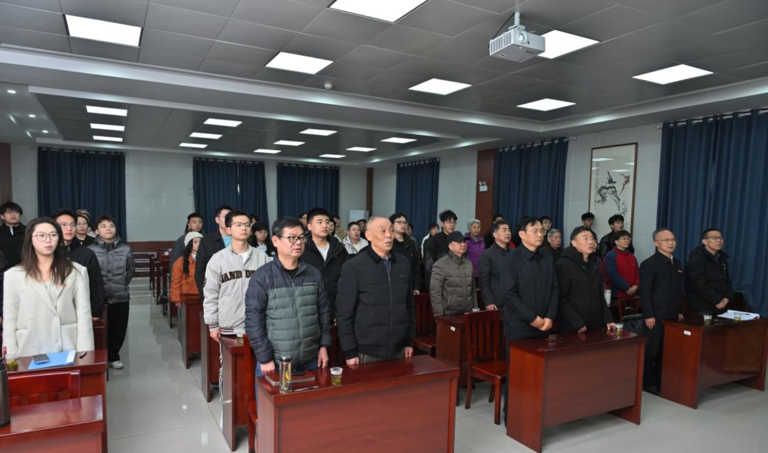 活动伊始,全体起立,奏唱国歌。