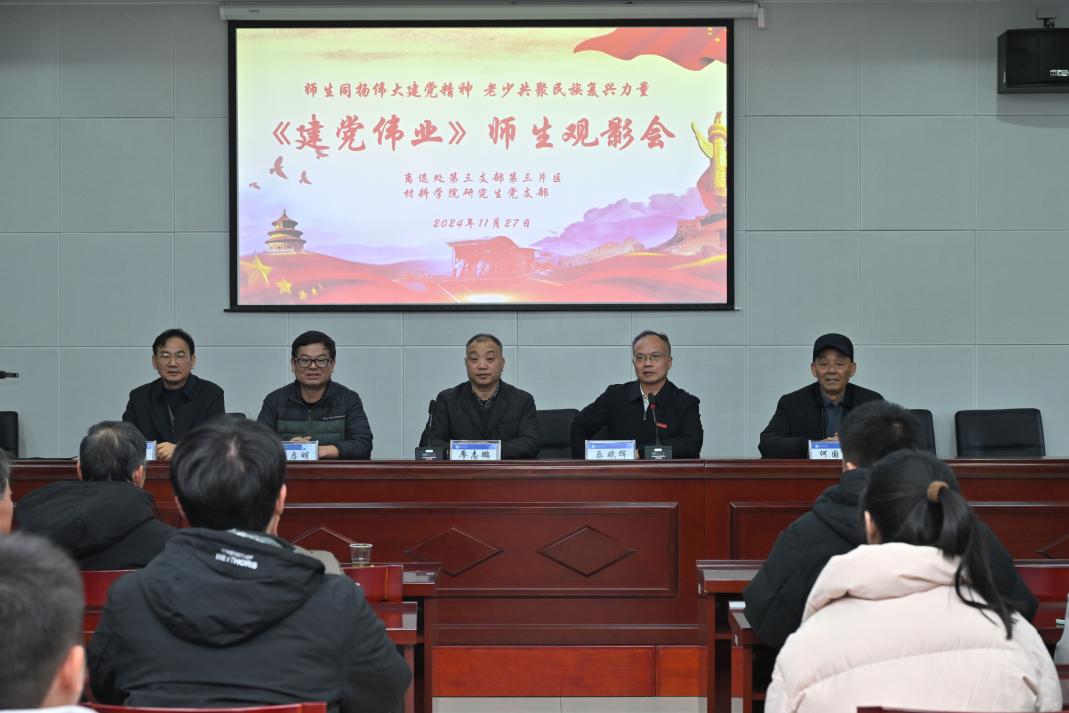 为了推动党史学习教育常态化长效化,11月27日,由材料与科学工程学院党委研究生党支部与离退休工作党委第三党支部联合举办的以“师生同扬伟大建党精神,老少共聚民族复兴力量”为主题的观影活动在学校离退休处会议室顺利举行。学院党委书记乐斌辉、离退休党委书记廖志鹏等领导出席,两个支部全体党员以及第三片区部分离退休群众参加,研究生党支部宣传委员焦保淇主持活动。