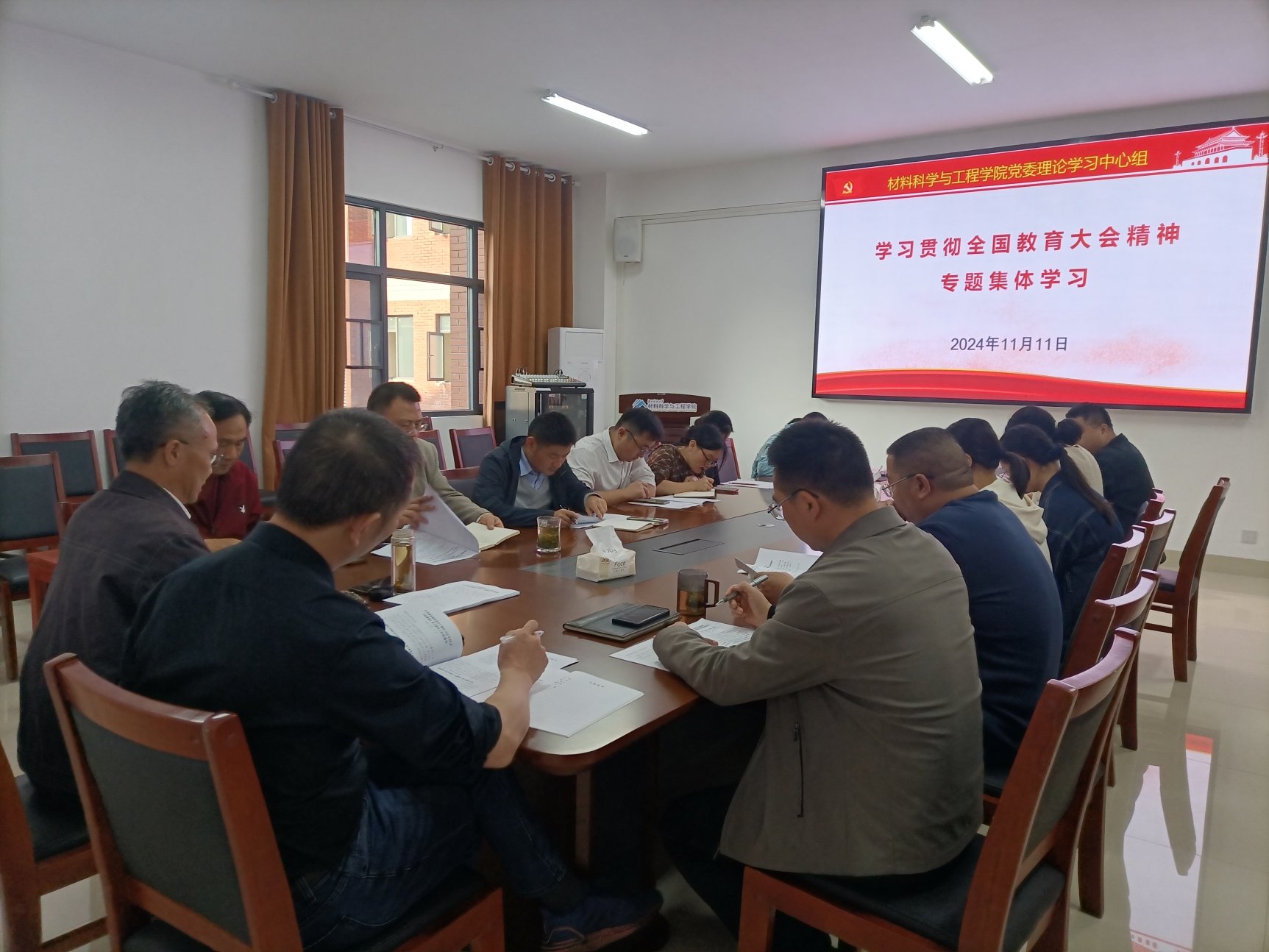 11月11日下午,院党委理论学习中心组在知行楼A140会议室举行2024年第11次集体(扩大)学习,集中学习贯彻全国教育大会精神。全体院党委委员、院领导,党政办、教务办、学工办主任,各教学系主任、实验中心主任,各党支部书记参加学习,院党委书记乐斌辉主持学习并作总结发言。