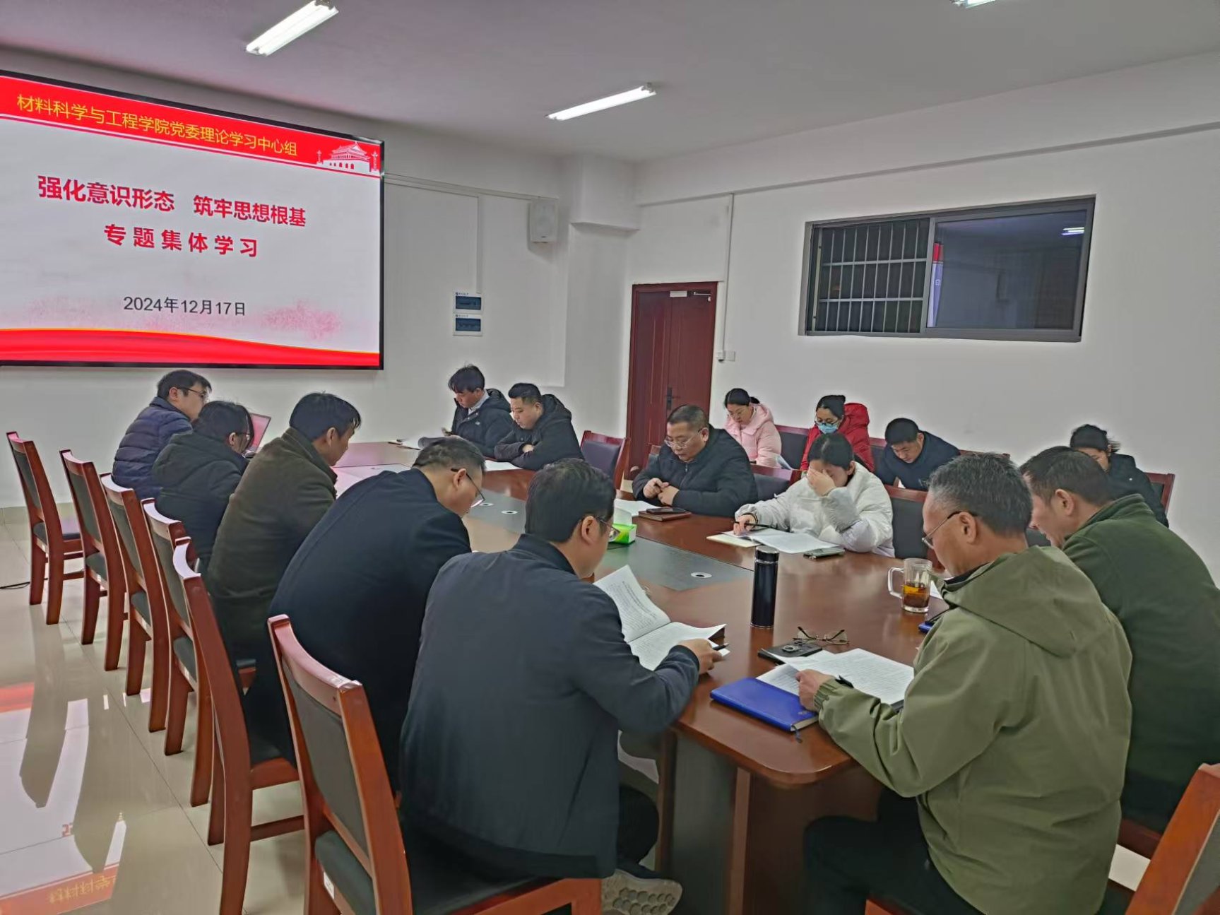 12月17日下午,院党委理论学习中心组在知行楼A140会议室举行2024年第12次集体(扩大)学习,本次学习主题是“强化意识形态 筑牢思想根基”。全体院党委委员、院领导,党政办、教务办、学工办主任,各教学系主任、实验中心主任,各党支部书记参加学习,院党委书记乐斌辉主持学习并作总结讲话。