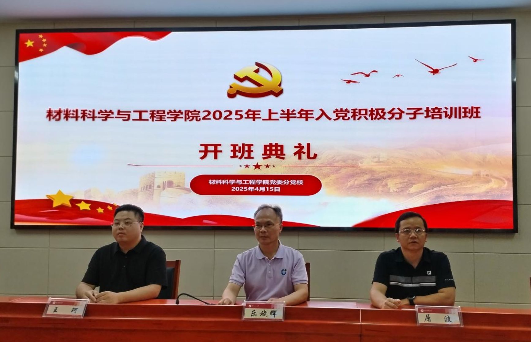 4月15日下午,院党委分党校2025年上半年入党积极分子培训班开班典礼在知行楼A144会议室隆重举行。院党委书记乐斌辉、院党委副书记屠波、专职组织员王珂老师出席典礼,本期培训班83名学员齐聚一堂,共同开启学习之旅。典礼在庄严的国歌声中正式拉开帷幕。