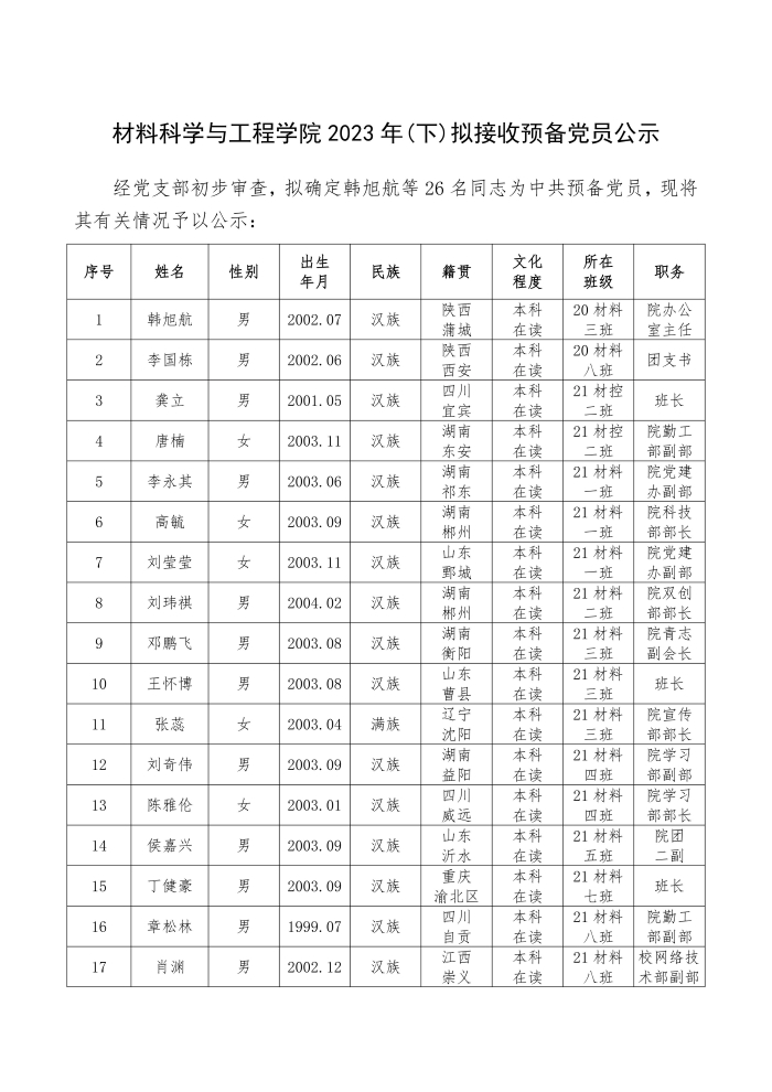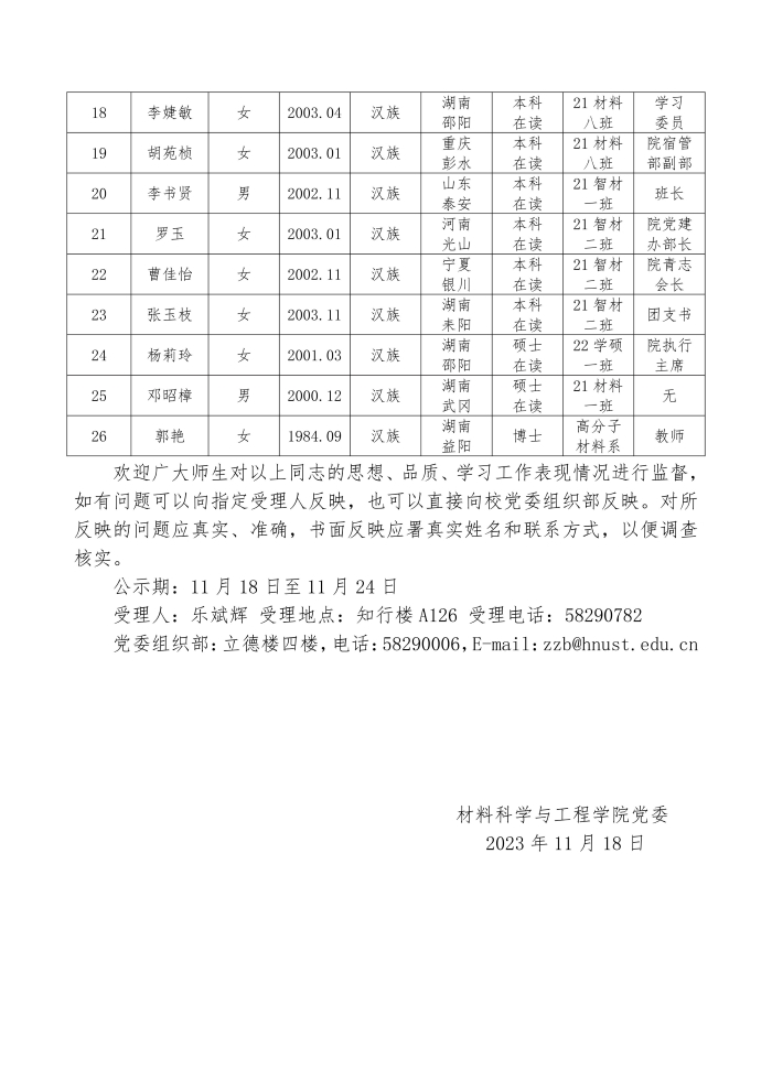 bv伟德国际体育官方网站2023年(下)拟接收预备党员公示