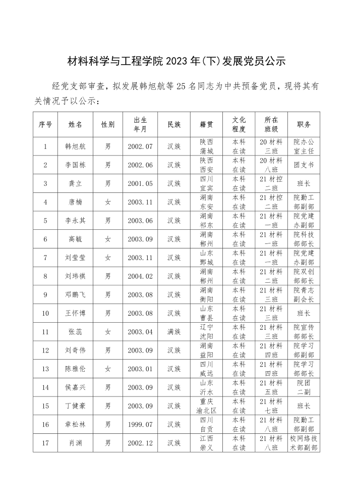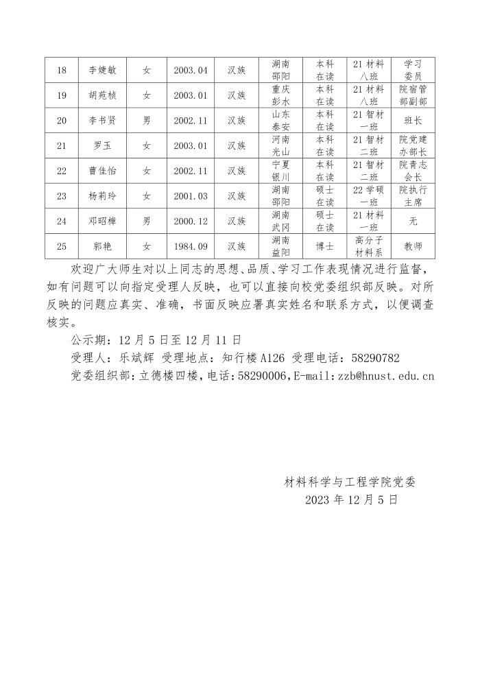 bv伟德国际体育官方网站2023年(下)发展党员公示