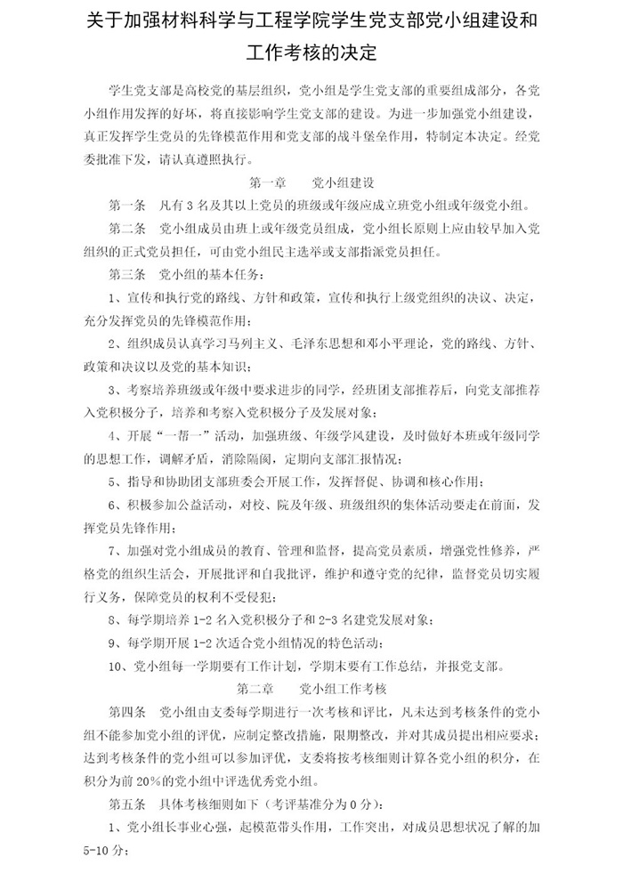 关于加强bv伟德国际体育官方网站学生党支部党小组建设和工作考核的决定