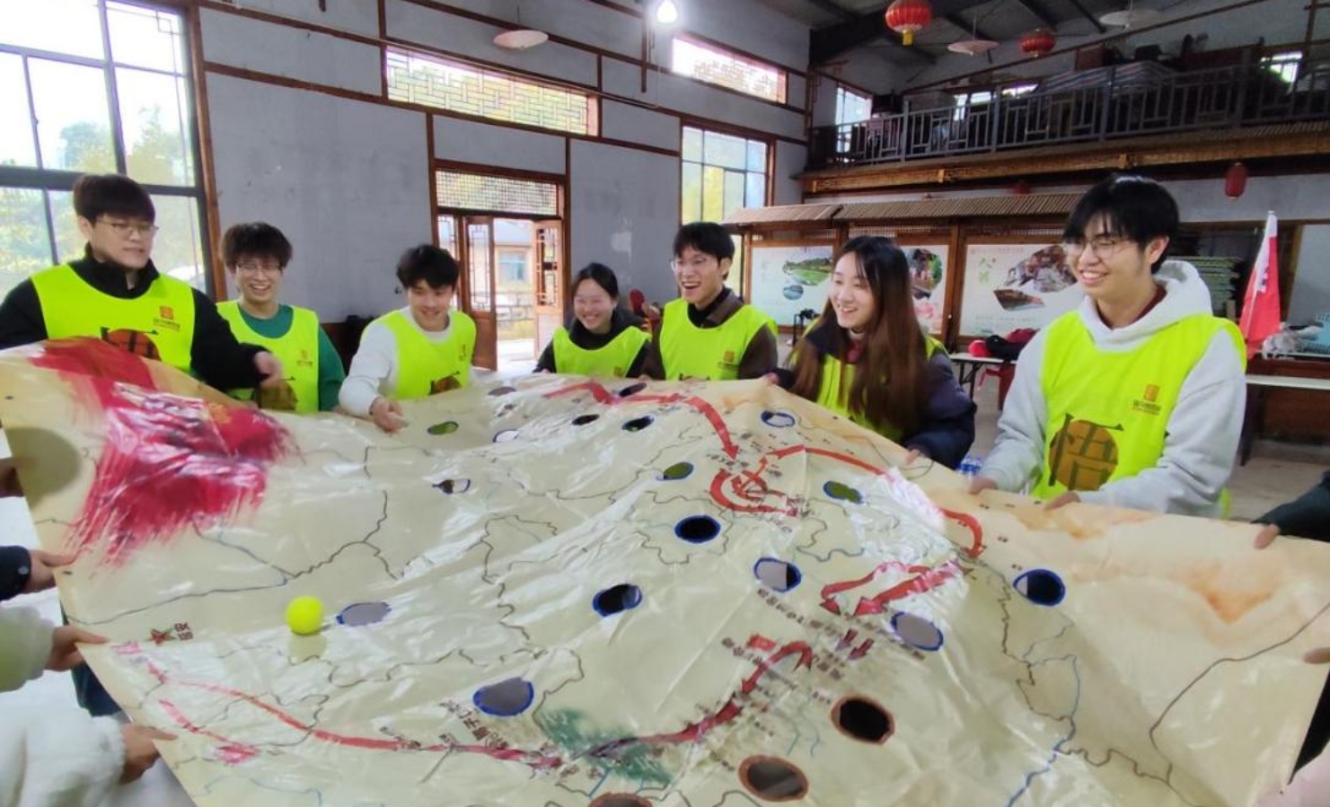 随后,一行人前往锦绣江南团建基地,开展了“三湾改编”“重走长征路”“红色密令”“穿越草地”等一系列富有教育意义的红色团建活动。这些活动通过模拟历史场景,让学生党员们在实践中体会革命斗争的艰辛与伟大,深刻领悟远大目标、坚定信念和严明纪律的重要性,有效锻炼了团队协作精神与执行力。
