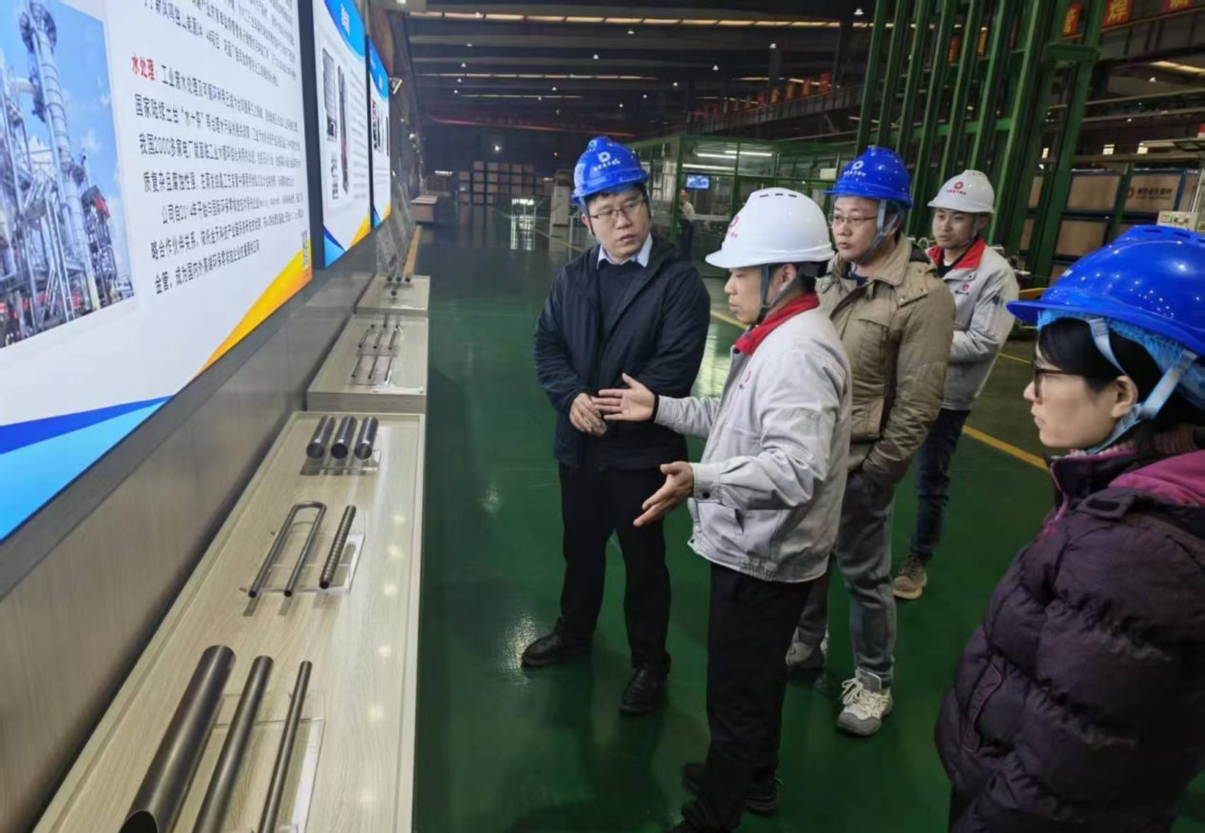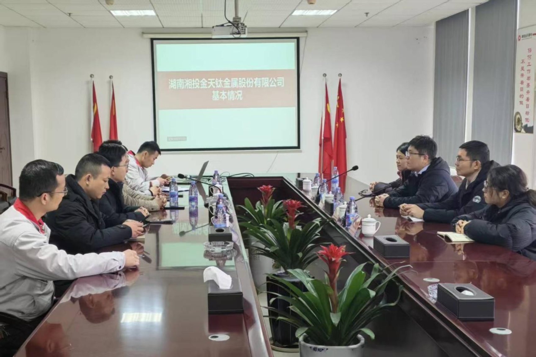 湘投金天钛金属有限公司、湖南湘投金天新材料有限公司相关负责人对陈宇强一行的到访表示热烈欢迎,并分别介绍了公司的业务板块、核心技术、产品应用及未来发展规划。企业技术部门负责人重点提出了在钛合金大宽幅板成形及性能优化、高端钛合金新材料研发等方面遇到的技术挑战。双方围绕这些具体技术问题进行了深入交流和探讨。会后,在企业技术人员的陪同下,参观了公司的轧制、热处理、焊接等核心生产车间,详细介绍了钛及钛合金材料全流程生产工艺、先进装备及质量控制体系。