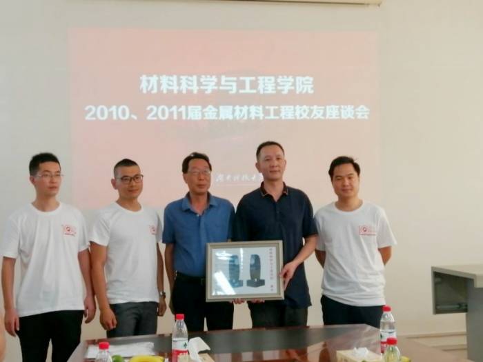10月2号上午10点,bv伟德国际体育官方网站在第十教学楼606会议室举行2010和2011届金属材料工程专业校友座谈会。院党委书记尹喜云、院长刘清泉、副院长刘龙飞、副书记吴成义、副院长颜建辉、金属材料工程系主任郭世柏,及其专业教师徐红梅、刘阳、宋宇峰等出席本次会议,金属材料工程专业2010和2011届近30余名校友参加。与会校友在题为“离湘十年,归来仍是少年”的背景墙上签完名后,座谈会正式开始,由吴成义主持。