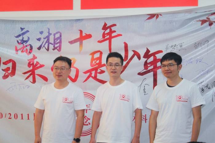 紧接着,校友向学院赠送两件精工制作的金属艺术品。随后,校友们纷纷发言,分享了十年来的经历和感受,表达了对母校、学院和老师们的感谢与美好祝愿。其间,校友代表余杰解释了“离湘十年,归来仍是少年”作为此次校友聚会主题的由来,他说道,“离湘十年”有三层含义:“离开湘潭十年、离开家乡十年、追求理想十年”,总有一层含义属于在座的校友。