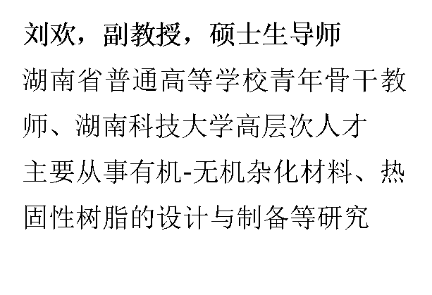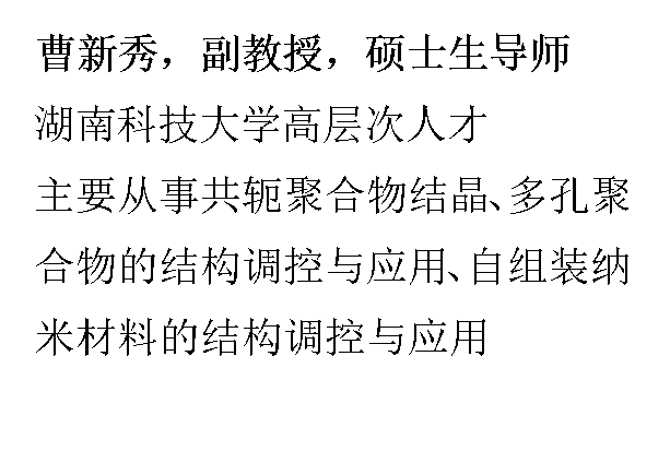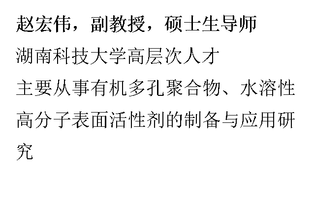 主要研究方向为微孔有机高分子材料的设计、合成及在环境净化和清洁能源中的应用、水性乳液制备关键技术与工艺研究。主持国家自然科学基金、湖南省高新技术产业科技创新引领计划等国家级/省部级项目7项,获湖南省自然科学奖二等奖、湖南省科学进步奖二等奖、湖南省高等教育教学成果三等奖、东莞市科技进步二等奖、东莞市专利优秀奖等多项奖励。获授权国家发明专利12项,应用与转化专利5项,其中,高密度氧化聚乙烯蜡乳液成功替代巴斯夫等公司的进口产品。 |