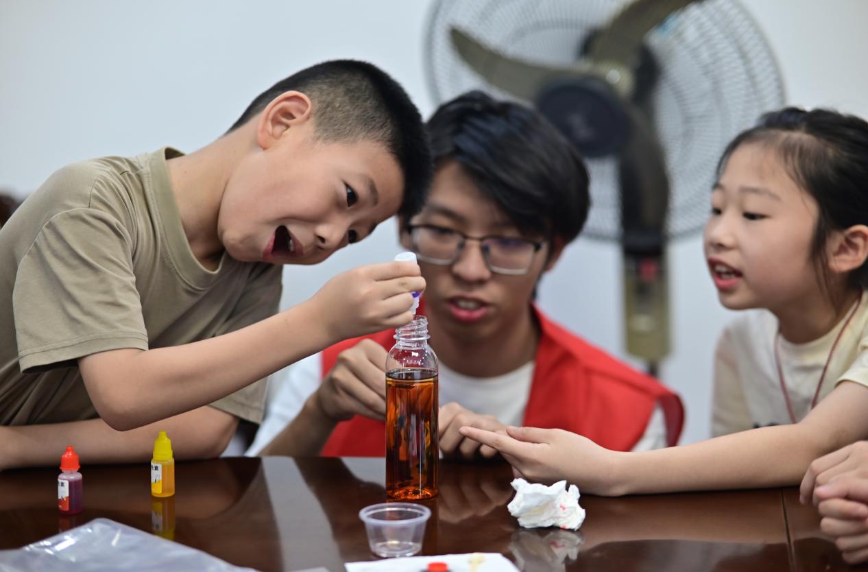 为拓宽小学生的科学视野,点燃小学生的科学热情,7月10日—15日,bv伟德国际体育官方网站青年志愿者分会在湘潭市先锋街道金塘村新时代文明实践站开展了小学生科学实验科普活动。本次实验课涵盖“蓝晒秘境”“彩虹雨”、“彩虹泡泡龙”、“萤火流星雨”、“海底火山喷发”五个主题,共20余名学生参加。