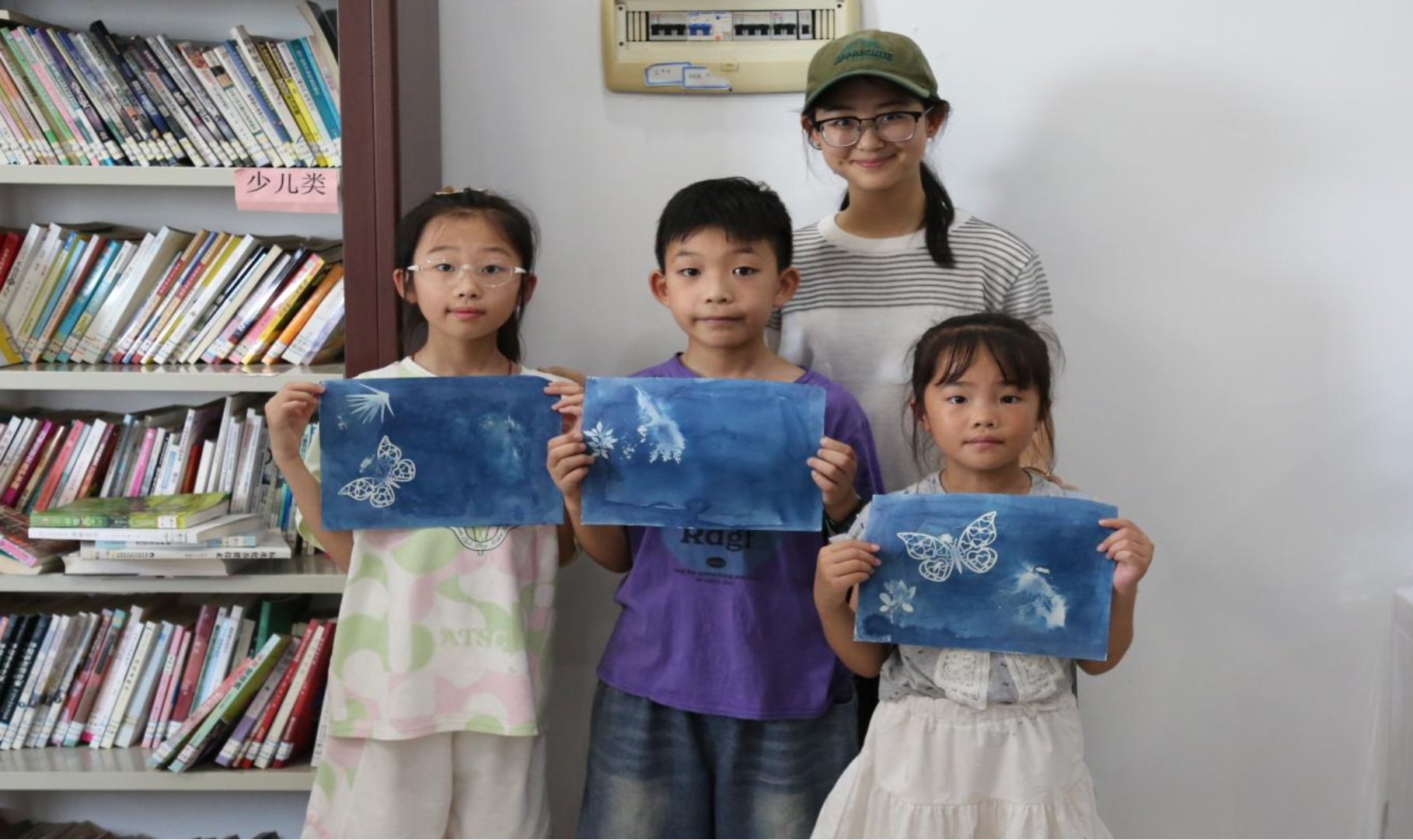在“蓝晒秘境”实验中,志愿者帮助学生将含有柠檬酸铁铵和铁**的混合溶液涂覆在纸张、布料等载体上,再将树叶、蕾丝、金属镂空物件等作为遮挡物覆盖在涂有感光液的材料上,放置于阳光下曝光。充分曝光后,经清水冲洗、晾干,呈现出独特的蓝色影像。在“彩虹雨”实验中,志愿者引导学生学习密度差异原理,将混有色素的食用油缓慢倒入清水杯中,静置后,色素颗粒逐渐“挣脱”食用油的包裹,在水中溶解、扩散,形成绚丽的“彩虹雨”。在“彩虹泡泡龙”实验中,志愿者讲解表面张力与色素扩散原理,为学生们展示了宛如彩虹般的梦幻景象。在“萤火流星雨”实验中,大家借助维生素B2的荧光特性,打造出梦幻般的视觉奇观。在“海底火山喷发”实验中,志愿者科普了碳酸氢钠和柠檬酸的酸碱反应,模拟火山喷发。