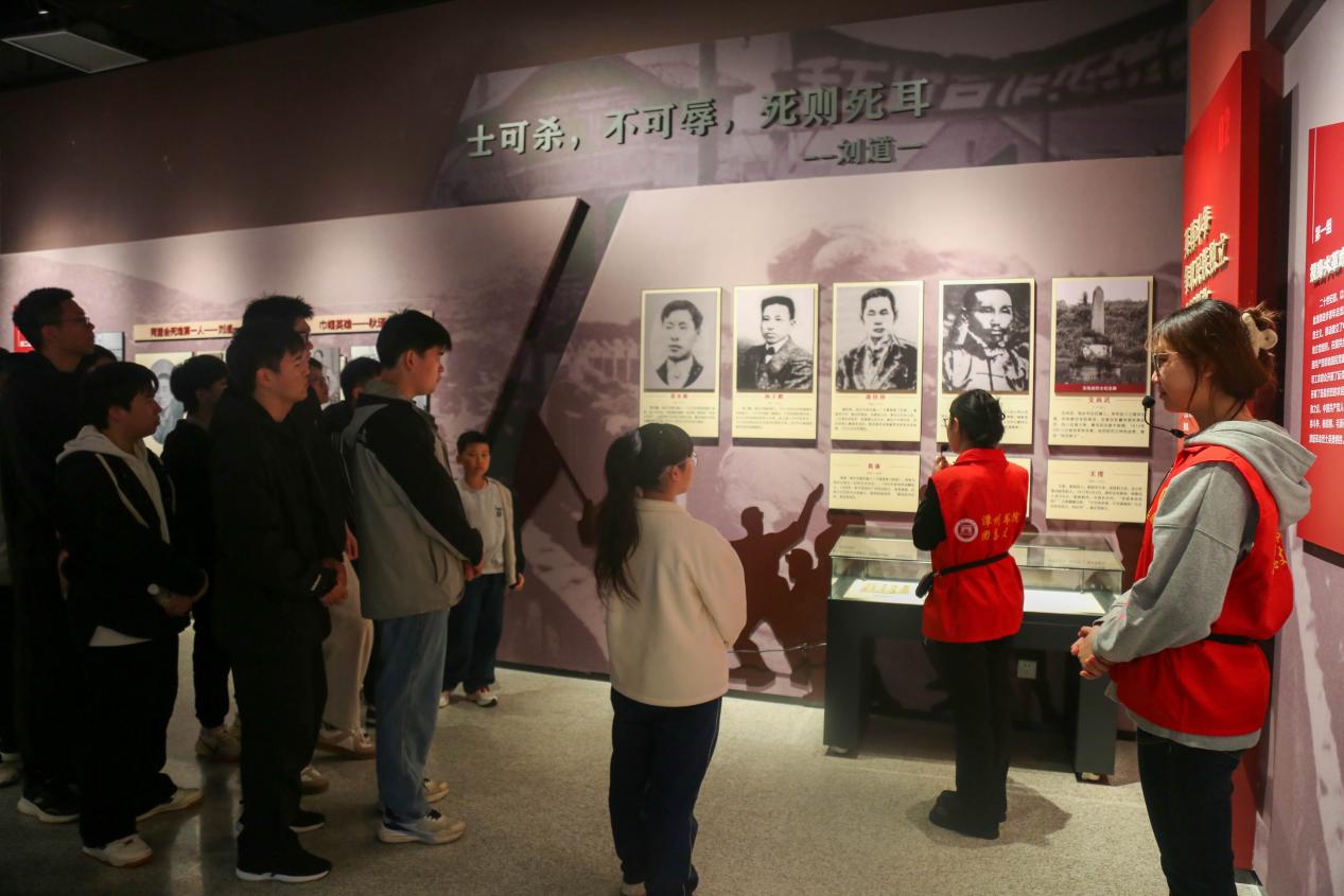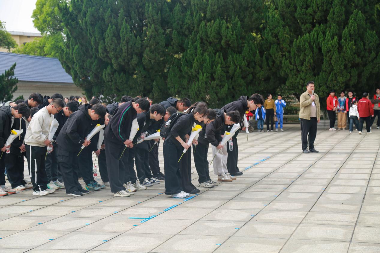 当日上午,志愿者们徒步从知行楼向湘潭市烈士陵园进发。这段徒步路程是一场“重走征途”的精神对话,每一步都承载着对革命先烈的深切缅怀。抵达烈士陵园后,全体志愿者庄严肃立,在烈士纪念碑前举行祭奠仪式。伴随着雄壮的国歌声,全体人员向革命烈士默哀,志愿者们依次敬献鲜花。最后,全体人员有序参观烈士纪念馆,重温革命历史,聆听英雄事迹,接受深刻的红色精神洗礼。