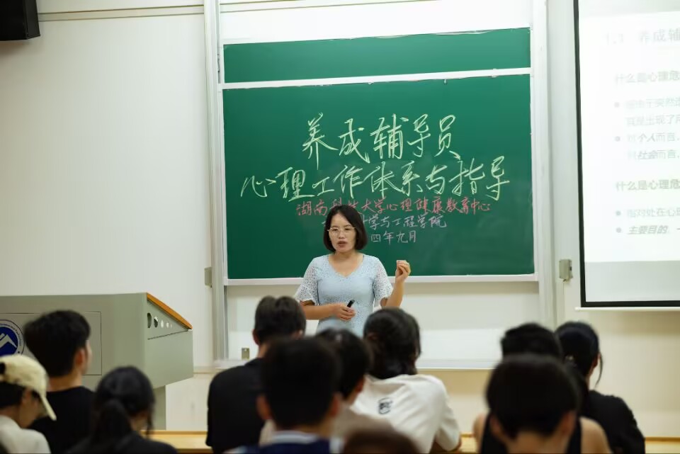 9月3日晚,bv伟德国际体育官方网站在知行楼B204举行2024级本科新生养成辅导员心理培训会,校心健康中心老师廖金花担任主讲,学院26名养成辅导员参加培训。
