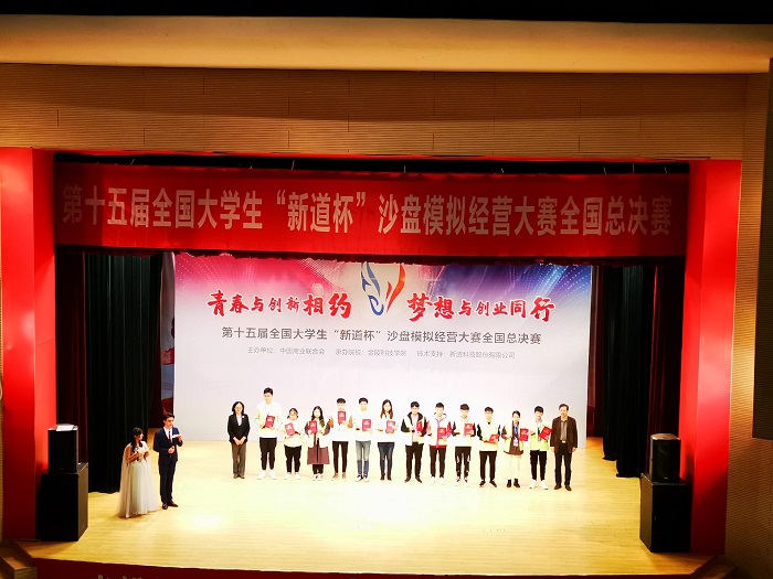 “用友新道杯”全国大学生沙盘模拟经营大赛迄今已举办15届,是大学生学科竞赛中规模最大、最具影响力的赛事之一,由教育部高等教育司支持、中国高等教育学会、中国商业联合会等机构主办。每年参赛高校1000余所、参赛学生近10万。所谓沙盘模拟经营,源于战争中的沙盘模拟推演,在虚拟的市场竞争环境中,运用立体直观的沙盘道具,设置经济环境、心理、市场、资金、产能、物流、营销等决策变量,全真模拟制造型企业经营,最后由计算机系统根据各企业的经营成果、发展前景、资产规模等指标确定优胜者。比赛考察学生对商业机会把握、市场博弈、运营管理等能力,旨在激发大学生企业经营管理意识,培养大学生的创新、创业能力。