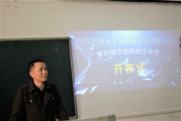 开幕式上,院长刘清泉致辞。他首先代表学院对本届“才苑”科技文化节的举办致以热烈祝贺,希望同学们积极参加科研活动,走进实验室,积极参加各项科技竞赛,争取取得好成绩。刘龙飞宣读了《关于材料学院开展第四届“才苑”科技文化节的通知》。吴成义希望同学们满怀信心,借此次科技文化节,不断提高实践能力和创新能力,创造更多科研成果。最后,由院科协各部门详细讲解了各项竞赛活动内容。