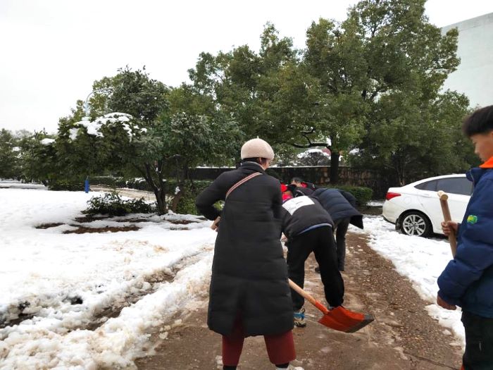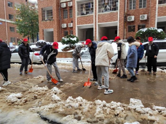 志愿者葛禹铭表示:“虽然铲雪的过程很累,但看着校园里的积雪被一点点清理干净,道路慢慢地被清理出来,也感到开心和自豪。我们都在学校生活学习,学校就像是我们的家,通过这次铲雪除冰活动,强化了我们的主人翁意识和志愿者精神。”天气虽然寒冷恶劣,但师生志愿者们心中饱含热情,手中铁铲一起一落,为广大师生开出一条安全的绿色通道。
