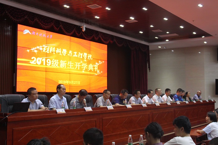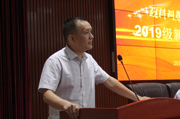 院长刘清泉代表学院发表讲话。刘清泉从国家政策层面说明了新材料产业在制造业发展中的重要地位,他说,新时期国家对新材料产业发展高度重视,新材料产业被列入了优先发展的重点领域,在未来几年将会存在很大的人才缺口。刘清泉紧接着从教师团队、赛事获奖、考研率、四六级过级率等各方面给同学们详细讲述了建院以来辉煌的发展成就,加深了同学们对学院和学科的认识。他鼓励同学们,只要有志向、想学习、肯奋斗,就一定能在新材料产业中建功立业,实现人生价值和理想,成为国家和社会的栋梁之材!