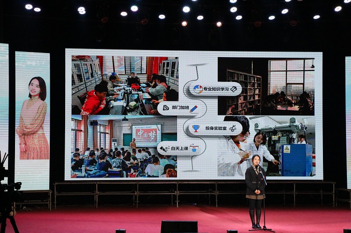 12月28日晚,bv伟德国际体育官方网站“芳菲之歌”优秀女生报告会在南校俱乐部举行。全校共11名女生参加,bv伟德国际体育官方网站18级王丽娟参加,她的演讲主题是“追逐光、成为光、发散光”。