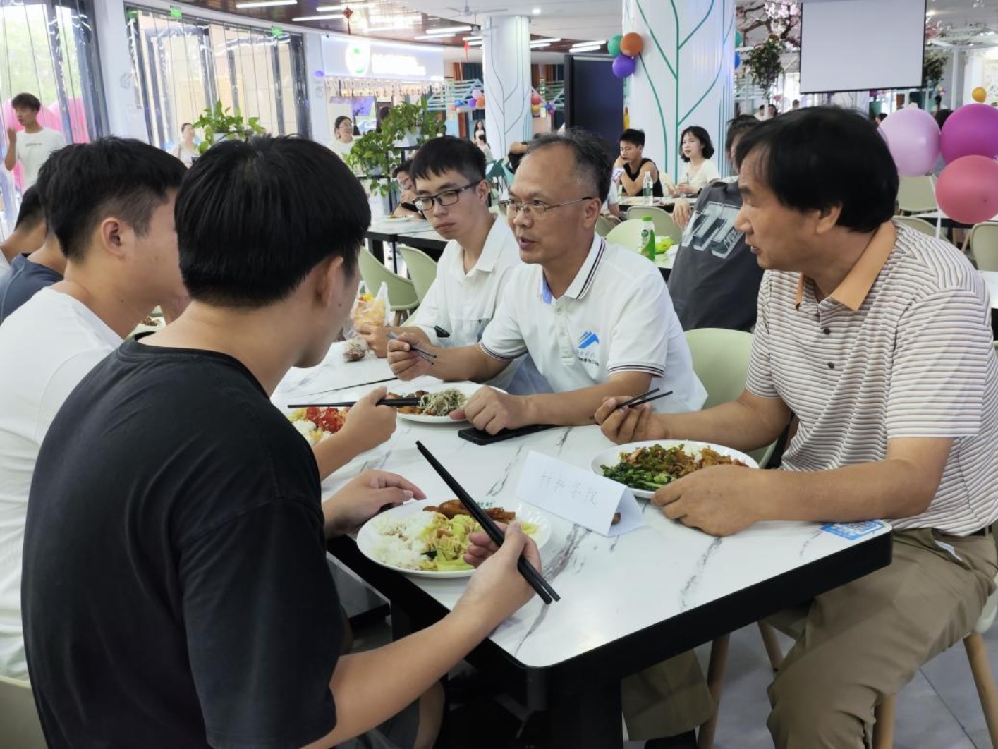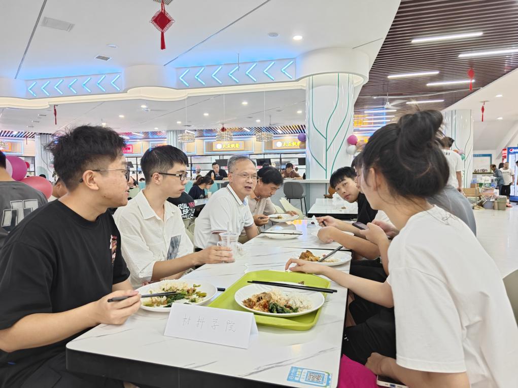 随后,在八珍楼一楼,一场温馨的“师生共进第一餐”拉开序幕。餐桌上,师生围坐一堂,共享美食,共话未来。领导和老师不仅关心食堂饭菜的口味,还细心询问学生的饮食习惯,现场气氛热烈而融洽。